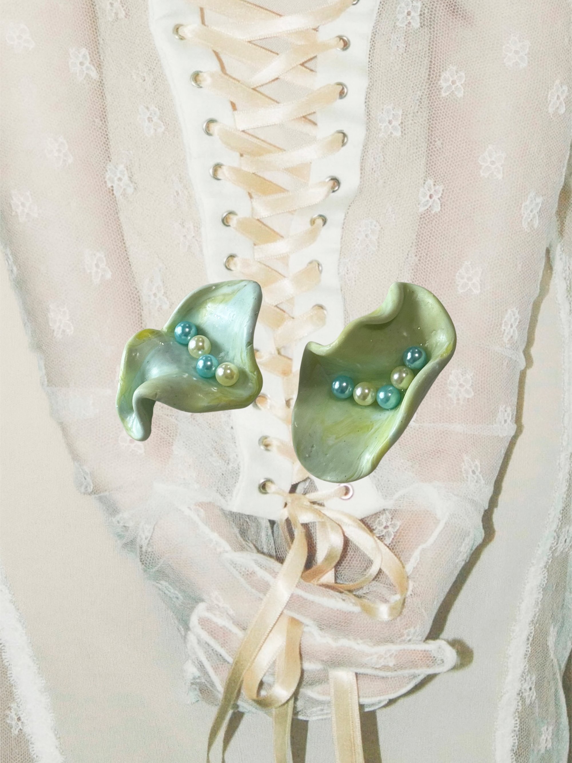 made of high quality polymer clay and acrylic varnish with light-blue and yellow pearls