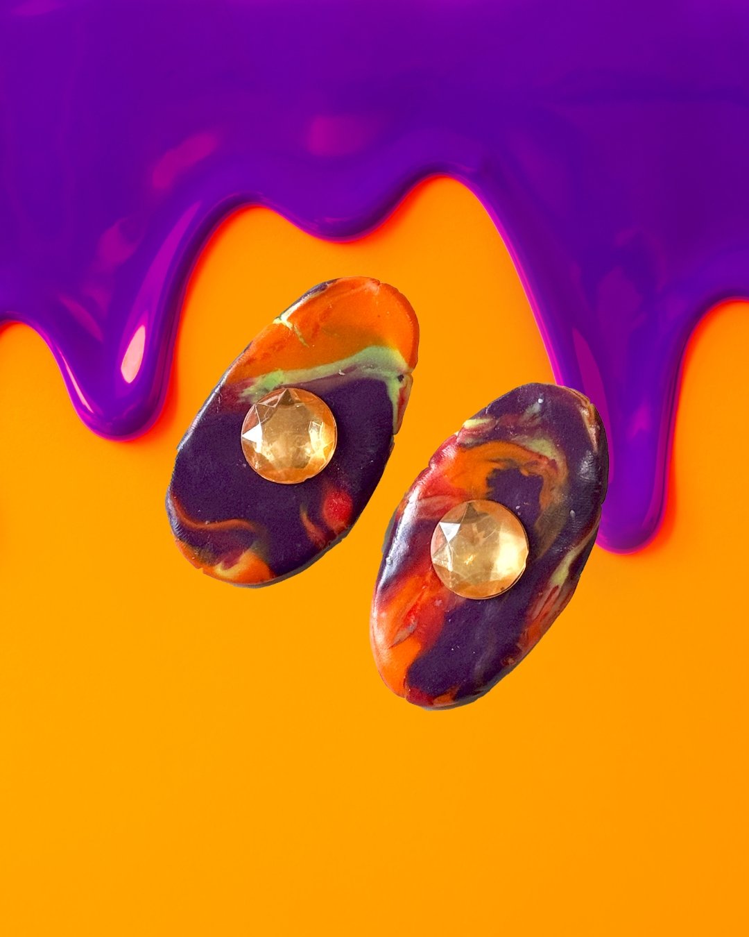 made of high quality polymer clay and acrylic varnish with Orange Acrylic Gemstones