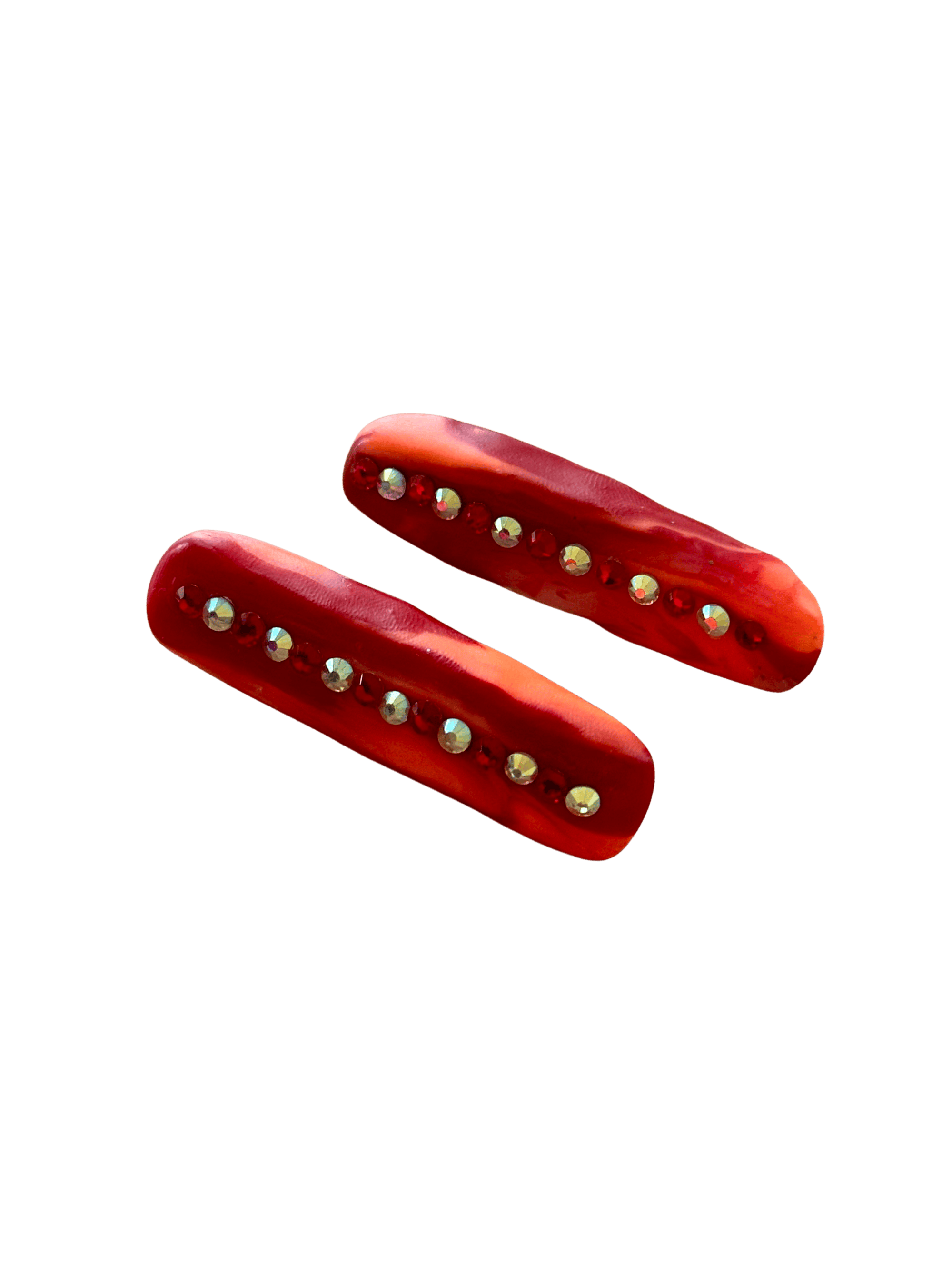 made of high quality polymer clay and acrylic varnish with red and holographic rhinestones